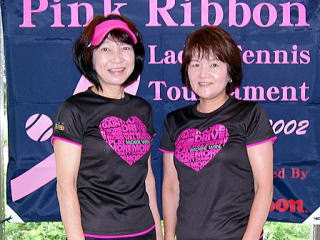 この大会は女子連本部主催で、参加者をはじめ、たくさんの方にピンクリボンバッジを購入していただいています。