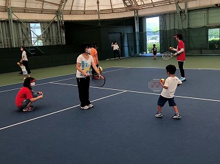 午前中の2時間、スポンジボールとレッドボールを使用して行いました。