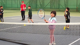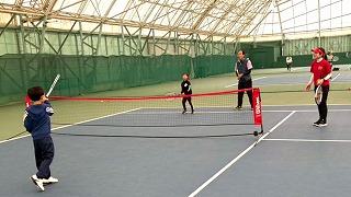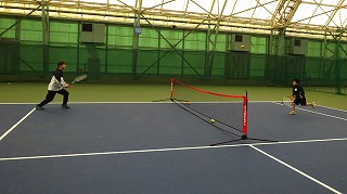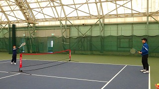 最後にはラケットで、ネットをはさんでストローク!!