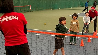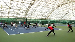 4月4日(金) 雨の心配のない、広島広域公園屋内テニスコートにて、