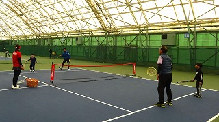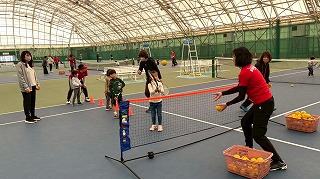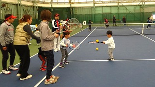 初めてテニスをするお子様と保護者のペアの講習会です。
