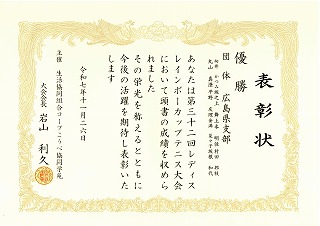 チームワークも良くなり、支部長、監督、仲間や友人の応援が後押しされました。すずキャプテンがトロフィーを授与された時は思わず涙が出ました。広島県初優勝の一員になれた事を幸せに思います。ありがとうございました。丸山