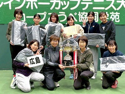 今回初めてレインボーの大会に出場し、素敵な経験をさせていただきました。また個人もですが、団体では広島県が、初めて今大会において優勝できたことが最高の思い出です。なにより優勝できたのは、ペア、チームメンバー、柏木監督 岡本さん、そして広島から兵庫まで応援に来てくださった皆様、また広島女子連の皆様のおかげです。広島県の団結力は本当に素晴らしい物でした。この環境の中でテニスできたことを心より感謝申し上げます。本当にありがとうございました。今後、広島県女子テニスが盛り上がるように、いろんな方と交流を深めテニスも上達していけるように頑張りたいです。金満