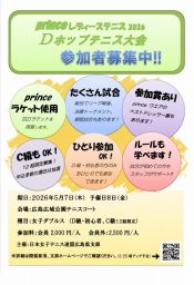 「Dホップテニス大会」「レッツeテニスinアクア」の開催要項を掲載しました。 |